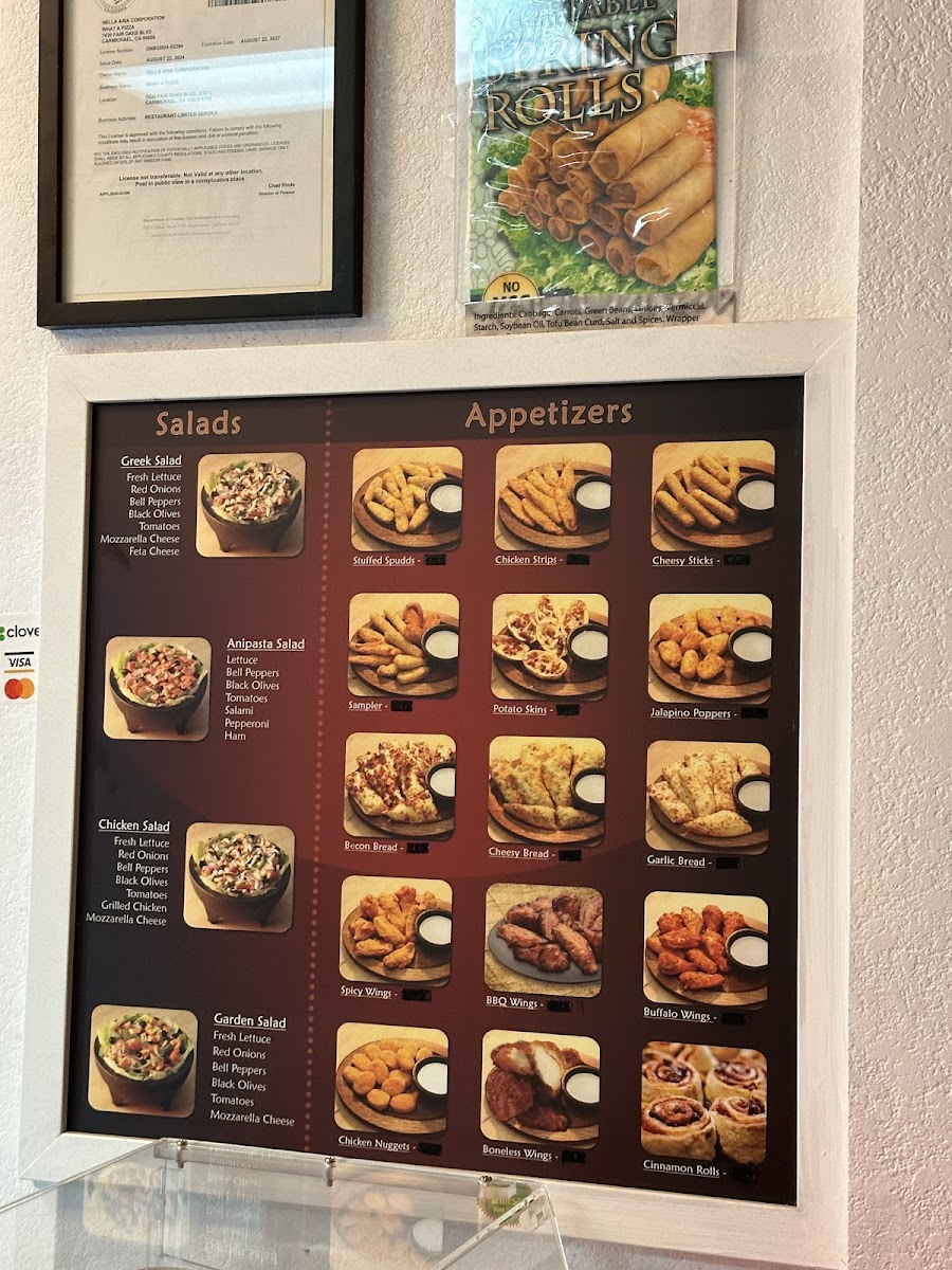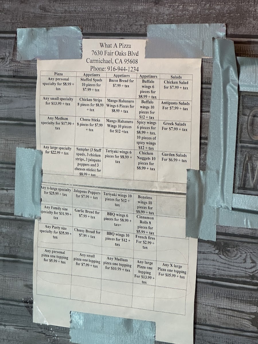 What a Pizza is a must-visit for pizza lovers in Carmichael, CA. This pizza joint offers a wide range of menu items, from classic cheese and pepperoni pizzas to gourmet creations like BBQ Chicken Pizza and Chicken Artichoke Pizza. The menu also includes appetizers like Cheese Sticks and Garlic Bread, salads like the Greek Salad and Antipasto Salad, and game day specials like Large 3 Topping Pizza.